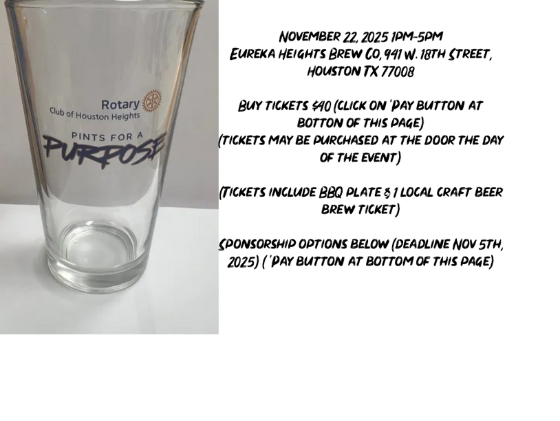 We are excited to announce that we have partnered with Eureka Heights Brewery to host our first ever Brews and BBQ event on Saturday, November 22, 2025, 1-5pm, 941 W. 18th Street, Houston, TX 77008.